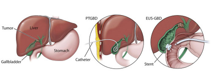 EUS (Endoscopic Ultrasound)-guided gallbladder drainage is a minimally invasive procedure performed to alleviate symptoms associated with acute or chronic cholecystitis (inflammation of the gallbladder) when conventional treatment options are not feasible. During the procedure, an endoscope equipped with an ultrasound probe is inserted through the mouth and advanced into the duodenum. Using real-time ultrasound imaging, the gastroenterologist identifies the gallbladder and locates a suitable puncture site on its wall. A needle is then passed through the endoscope and used to puncture the gallbladder, creating a tract through which a stent is inserted to allow bile drainage into the small intestine. EUS-guided gallbladder drainage is particularly beneficial for patients who are not candidates for surgery or ERCP (Endoscopic Retrograde Cholangiopancreatography)-based interventions due to anatomical variations, prior surgeries, or failed cannulation. The procedure is associated with a high technical success rate and provides effective relief from symptoms such as abdominal pain, fever, and jaundice, thus improving the patient's quality of life. However, like any medical procedure, EUS-guided gallbladder drainage carries some risks, including bleeding, infection, and stent migration, which are minimized through careful patient selection and procedural expertise. Overall, EUS-guided gallbladder drainage represents a valuable therapeutic option for patients with gallbladder-related disorders, offering an alternative to surgical intervention with favorable outcomes and minimal invasiveness.