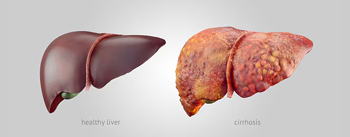 Cirrhosis is a chronic liver disease characterized by the progressive scarring and fibrosis of liver tissue, leading to impaired liver function. This condition can result from various factors, including chronic alcohol abuse, viral hepatitis infections (such as hepatitis B and C), non-alcoholic fatty liver disease (NAFLD), autoimmune hepatitis, and certain genetic disorders. As cirrhosis advances, the liver's ability to perform vital functions such as detoxification, protein synthesis, and bile production becomes compromised. Patients with cirrhosis may experience symptoms such as fatigue, jaundice, abdominal swelling (ascites), easy bruising or bleeding, and mental confusion (hepatic encephalopathy). Complications of cirrhosis can be severe and life-threatening, including portal hypertension, which can lead to variceal bleeding and ascites, hepatorenal syndrome, liver cancer (hepatocellular carcinoma), and liver failure. Diagnosis of cirrhosis is typically made based on clinical evaluation, laboratory tests (such as liver function tests), imaging studies (such as ultrasound or MRI), and sometimes liver biopsy. Management of cirrhosis aims to slow disease progression, alleviate symptoms, and prevent complications. This may involve lifestyle modifications (such as alcohol cessation and dietary changes), medications to manage symptoms and complications, regular surveillance for liver cancer, and in some cases, liver transplantation for end-stage liver disease. Early diagnosis and intervention are crucial in managing cirrhosis and improving patient outcomes, emphasizing the importance of regular medical monitoring and adherence to treatment plans.