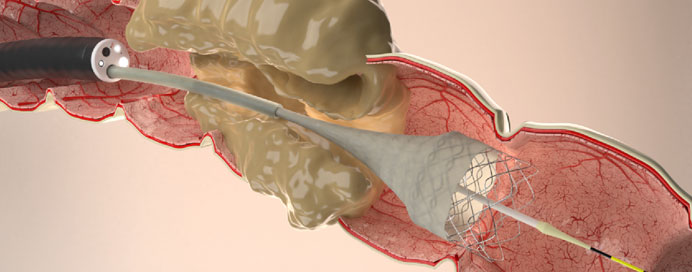 Colonic stenting is a minimally invasive medical procedure used to treat obstructive lesions or strictures in the colon. During the procedure, a specialized stent, typically made of metal or plastic, is inserted into the narrowed area of the colon using endoscopic or radiologic guidance. The stent expands to widen the passage and restore normal bowel function, allowing for the passage of stool and relieving symptoms such as abdominal pain, bloating, and constipation. Colonic stenting is often used as a palliative treatment for patients with advanced colorectal cancer or as a bridge to surgery in cases where immediate surgery is not feasible or advisable. It offers advantages such as shorter recovery times, reduced morbidity compared to emergency surgery, and improved quality of life for patients with obstructive colorectal conditions. However, careful patient selection and ongoing monitoring are essential to minimize complications such as stent migration, perforation, or obstruction. Overall, colonic stenting is a valuable intervention in the management of obstructive colorectal disorders, providing symptomatic relief and improving patient outcomes.